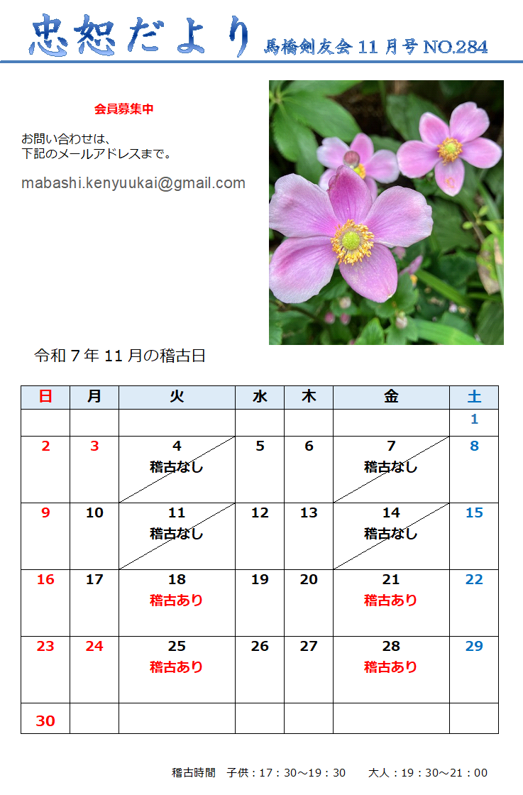 HOME>今月の稽古日